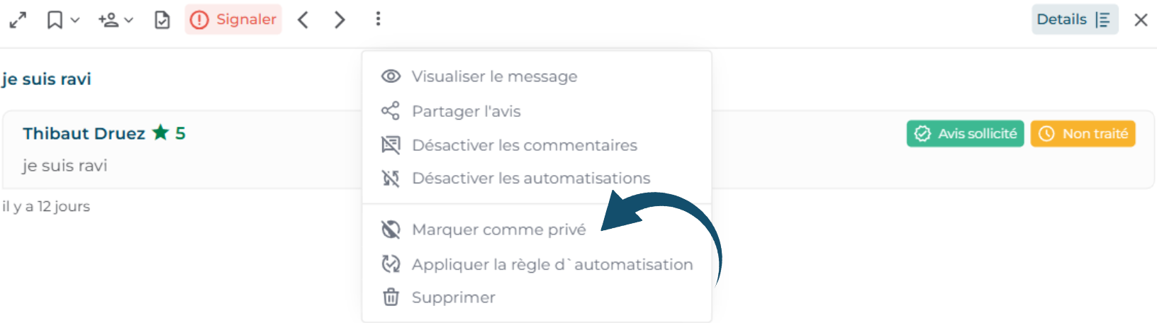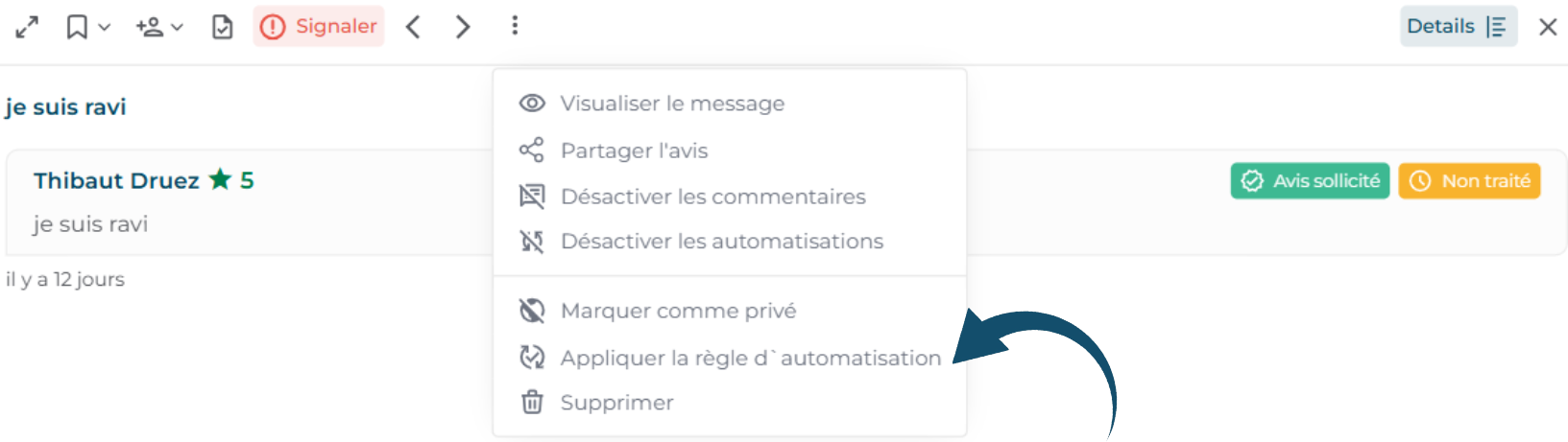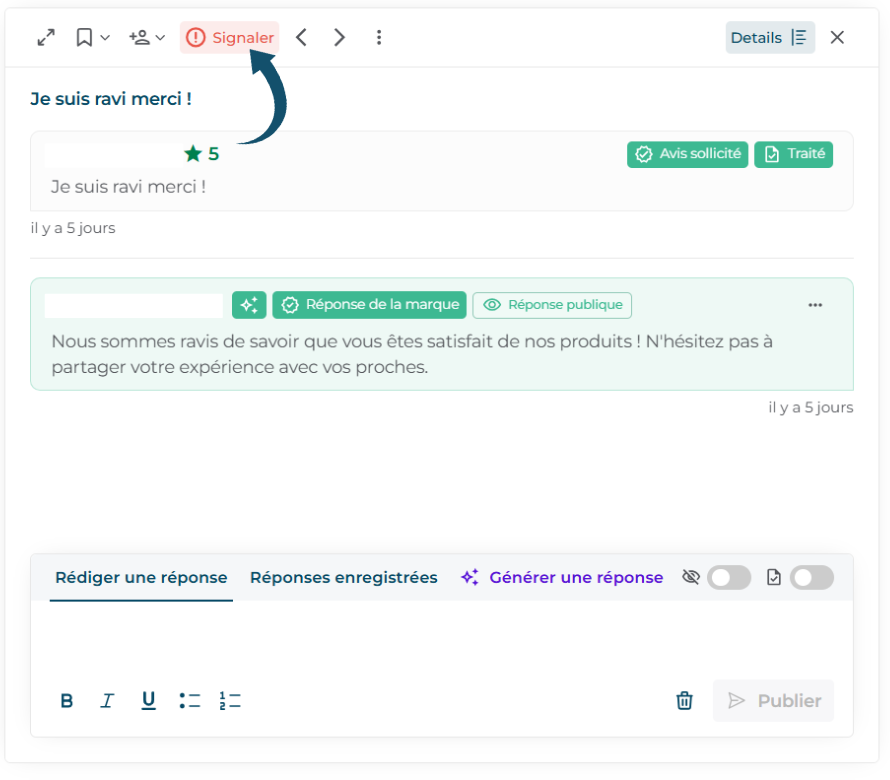 Les libellés vous permettent de classer vos avis par thématiques (ex. service client, prix, accueil…). Ils facilitent le suivi dans votre boîte de réception et l’analyse globale de vos retours clients.