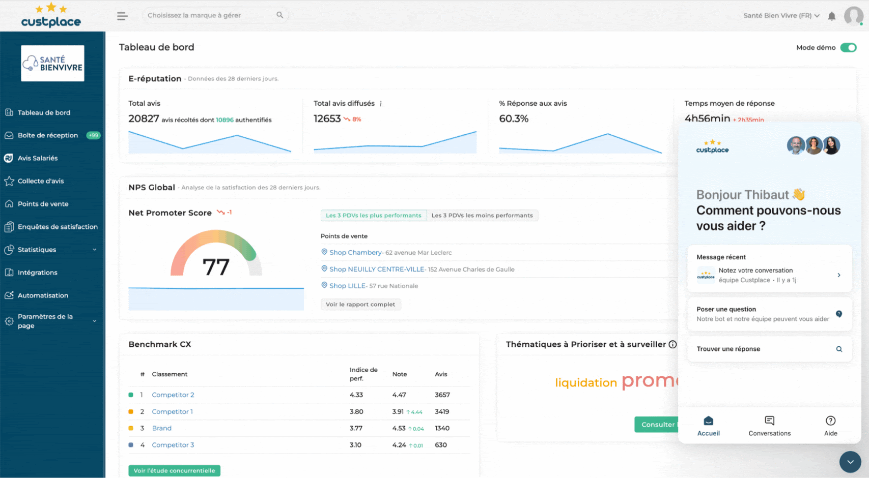 Assistance : si les avis ne remontent pas passé ce délai, contactez l’équipe Custplace via la messagerie intégrée en bas de votre Manager.